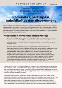Komunitas, partisipasi, subsidiaritas dan discernment. Weekend Komunitas diadakan pada 9-11 Maret 2024